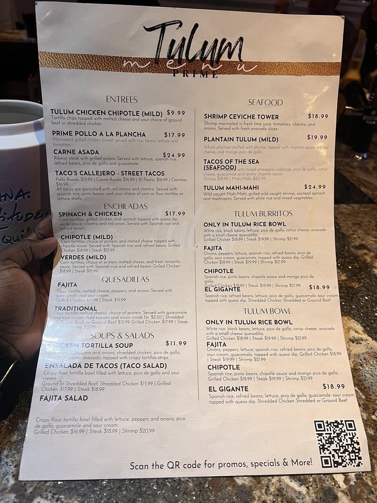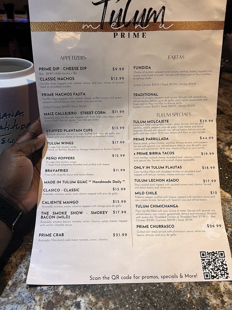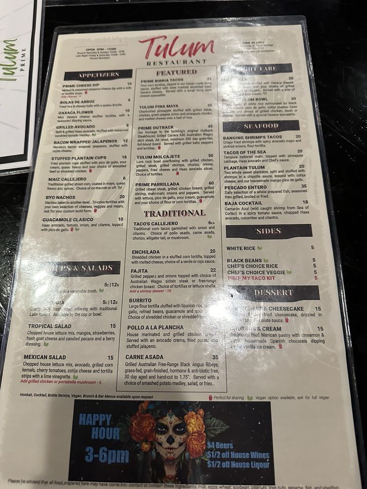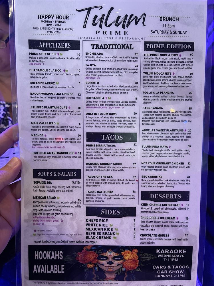 Tulum Prime offers a vibrant dining experience in Coral Springs, Florida with its wide range of menu options, from appetizers like Prime Cheese Dip and Guacamole Clasico to traditional dishes like Enchiladas and Burritos. The relaxed setting with DJ nights and live music creates a lively atmosphere, perfect for gatherings with friends and family. The reviews praise the delicious food options, especially the tacos and bolas de arroz. The attentive service from staff members like Shemirah and Cole adds to the overall positive experience. With a Latinx-owned establishment and a variety of amenities like outdoor seating and free Wi-Fi, Tulum Prime is a standout choice for those craving authentic New Mexican cuisine.